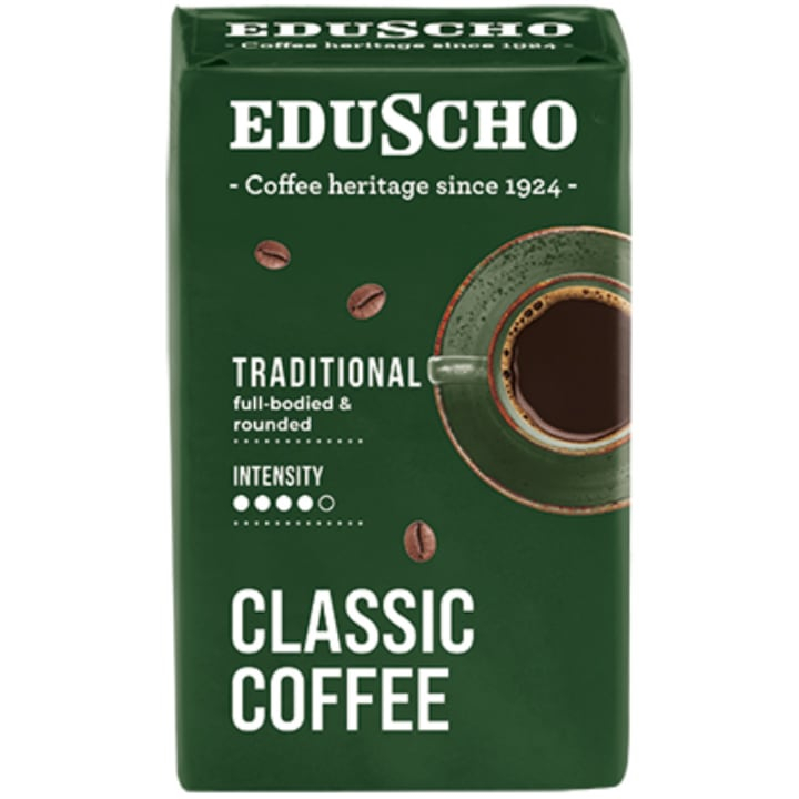 Eduscho Classic este o cafea prăjită și măcinată cu aromă echilibrată, ideală pentru consumul zilnic. Gustul său rotund și plăcut o face perfectă pentru cei care preferă o cafea clasică, ușor de savurat, fără note amare.